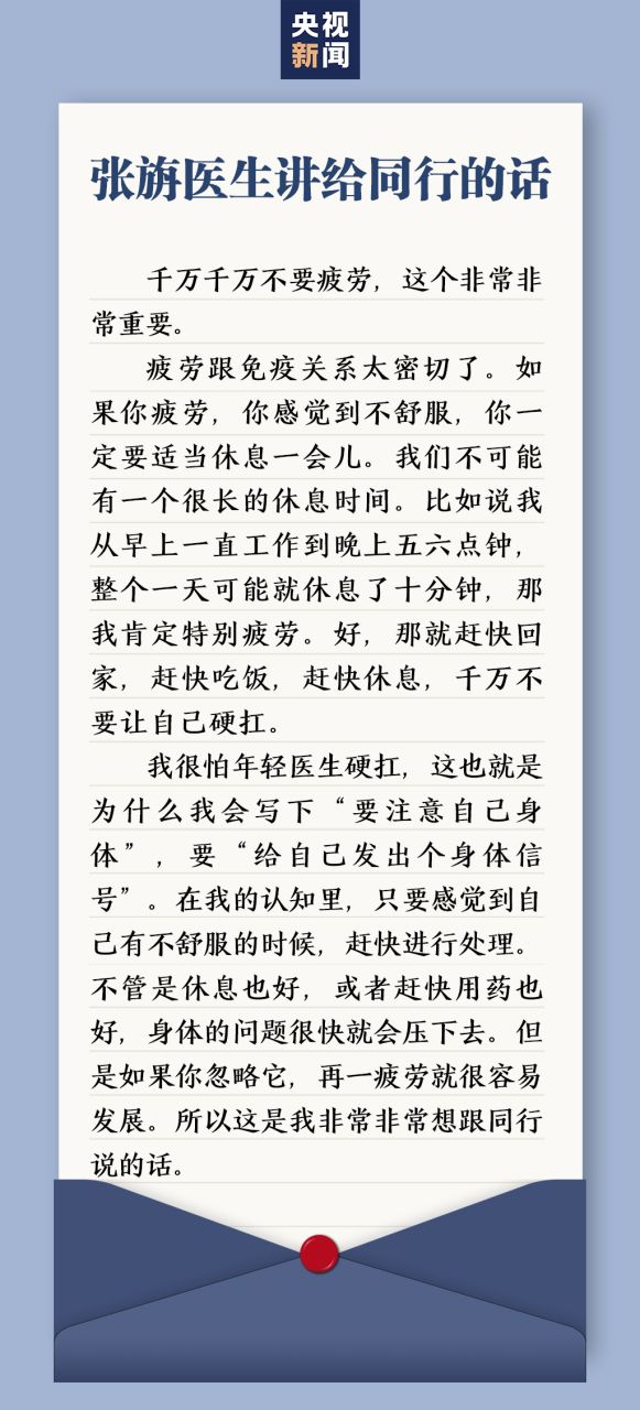 里面有她想对一线医生们说的话