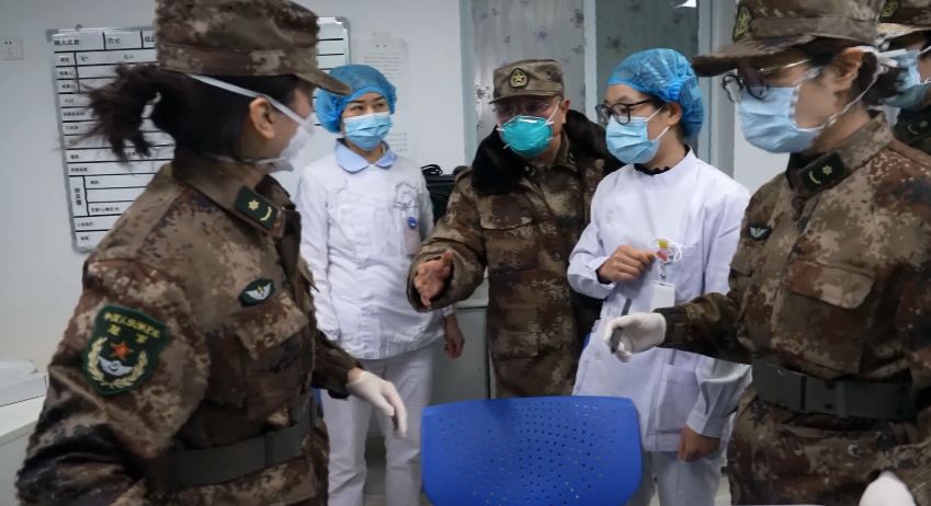 1月26日下午,陆军军医大学医疗队在武汉市金银潭医院收治首批新型冠状病毒感染的肺炎患者,诊疗护理工作全面展开。