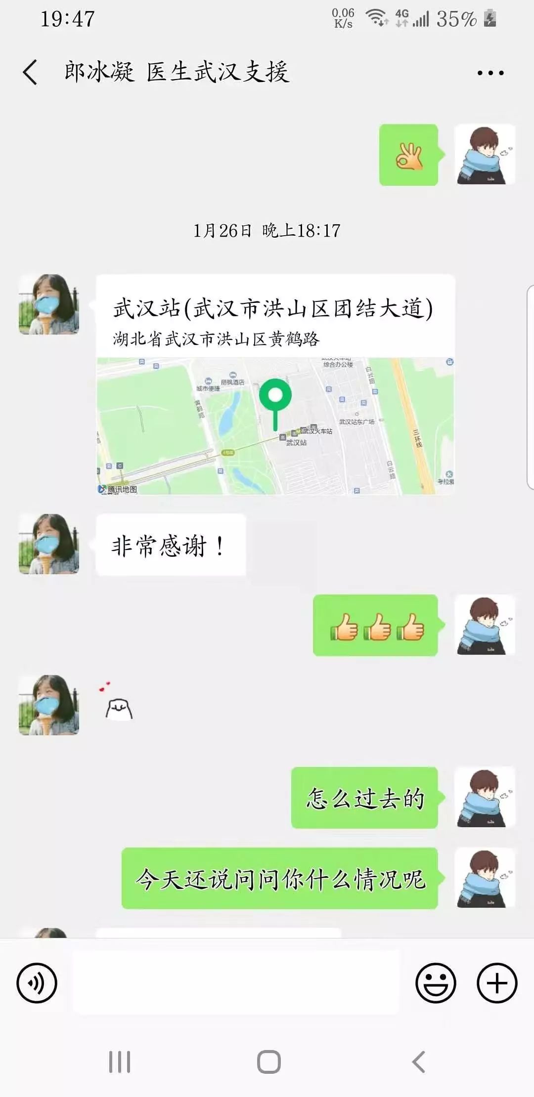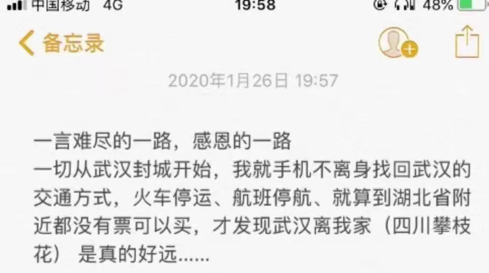 “经历约1872公里的我已平安到达武汉,这一路我遇见了很多可爱的人,列车长、车站工作人员……他们都在为武汉打气加油,人间自有真情在!”1月26日,白衣天使郎冰凝在自己的手机里敲出了一段动人的文字,文字的背后是铁路人倾情护送她奔赴武汉的暖心故事。
