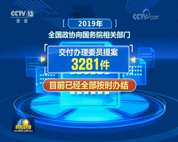 2019年,全国政协向国务院相关部门交付办理委员提案3281件,目前已经全部按时办结。一年来,全国政协在全力保障提案办理服务质量的同时,也多措并举引导委员认真履职,提出更多高质量提案。