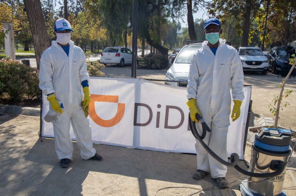 图为2020年4月19日,在智利圣地亚哥,工作人员准备为滴滴出租车平台的注册车辆消毒。(新华社发)
