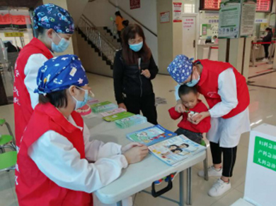 医务人员向到场的家长和孩子讲解口腔健康、均衡饮食、洁白牙齿的重要性,口腔科主任杨志德还通过保健院微课堂直播形式向孕产家庭宣传孕产妇口腔保健的健康知识。