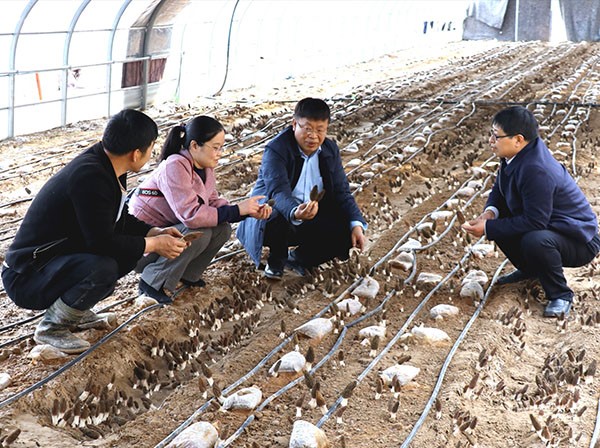 常明昌(右二)正在讲解推广蘑菇种植实用技术。(受访者供图)