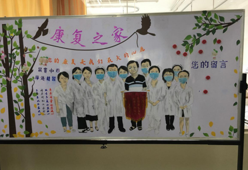 再后来,科室的年轻医生把谢先生送锦旗时医护人员和患者的合影画成了一幅手绘画。画是卡通画,但是和照片对比,显得可爱又温馨。康复科主任赵志伟表示,通过这张画鞭策科室成员恪守“救死扶伤,医者仁心”的职责,同时也感谢患者对科室的信任和支持。