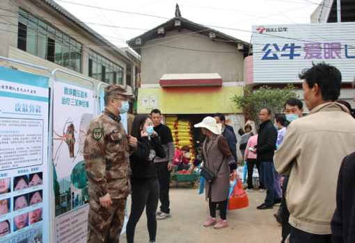 2月27日,来自解放军某部医院的18名医疗专家一大早就来到红河州弥勒市朋普街上,与等候在这里的弥勒市朋普中心卫生院8名医生汇合,一道组成义诊服务团队,共同开展“军民鱼水情”健康义诊活动。