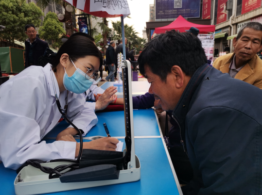 在义诊服务台现场,医务人员还免费为前来参加活动群众测量血压、号脉、诊断病情、出具健康处方、用药指导等服务,对血压异常的群众,嘱咐密切观察、及时就医,建议合理饮食、戒烟限酒、适当锻炼、保持心理平衡、管理清晨血压等。