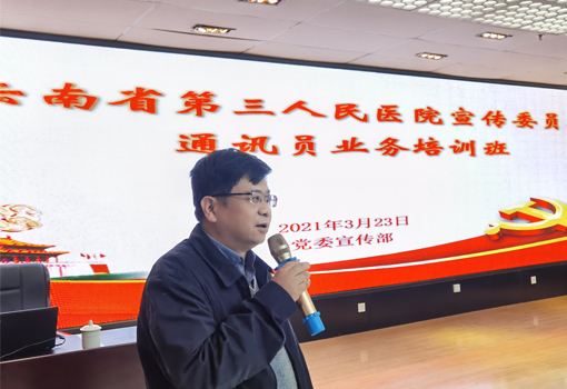 为深入落实《中国共产党宣传工作条例》和中央有关意识形态工作要求,全面提高医院宣传工作水平,牢牢掌握意识形态工作的领导权主动权,切实打造一支懂政策、能采写的综合素质全面的宣传骨干队伍,3月23日下午,云南省第三人民医院举办2021年度第一期党支部宣传委员、科室通讯员宣传工作专题培训班。