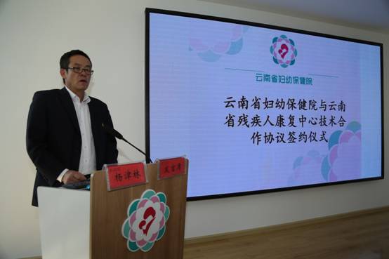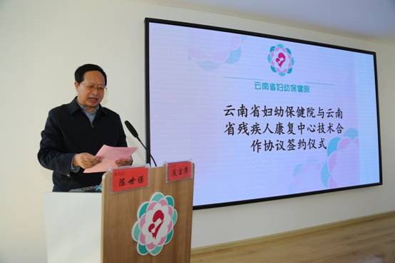 云南省残疾人康复中心党委副书记、副院长陈世保在签约仪式上致辞。他介绍,云南省残疾人康复中心是目前云南省规模最大的康复医疗机构,中心以残疾人的需求为导向,满足残疾人的多项康复需求。他表示,此次两家单位的技术合作,充分说明了云南省妇幼保健院对残疾儿童康复事业的推进所做的努力。