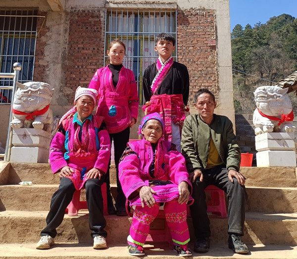 自脱贫攻坚开展以来,经过全党全国各族人民共同努力,脱贫攻坚战取得了全面胜利,贫困地区少数民族群众摘掉了穷帽,踏上了小康路。图为:2021年2月12日大年初一,踏上小康之路的脱贫群众在自家新盖住房前合影,祖孙三代喜笑颜开。