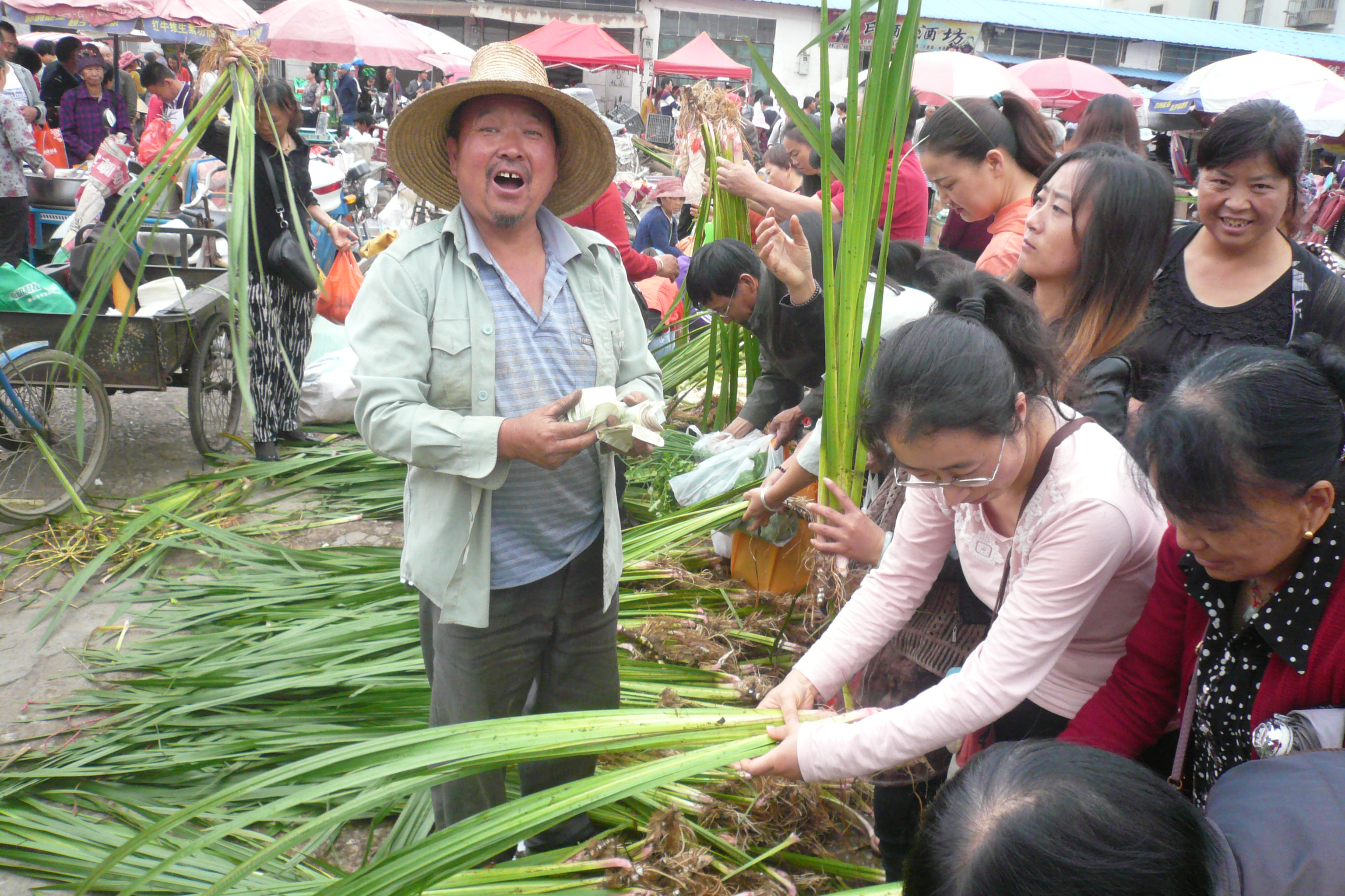 端午节这天,我们一家高高兴兴上街筹办过节需要的物品,购买了菖蒲、粽子、花索线和各种蔬菜、水果等。