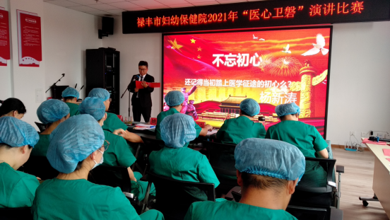 5月12日,禄丰市妇幼保健院在医院七楼会议室举行 “医心卫磐”为主题的“庆建党百年 育妇幼新人”演讲比赛。
