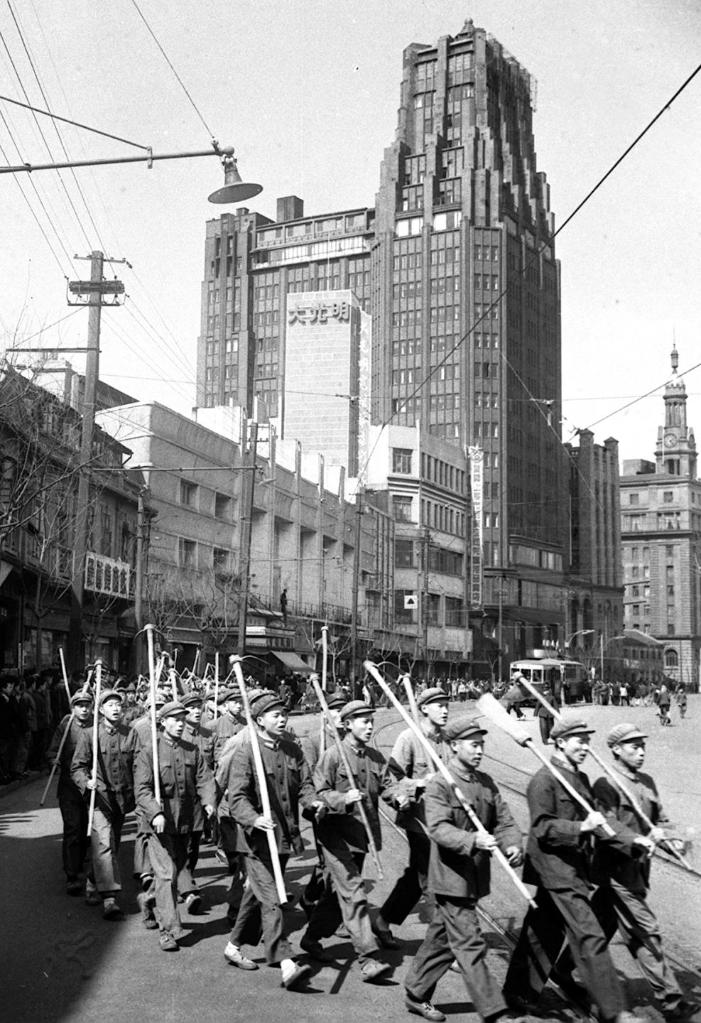 上海解放后,连队随大部队进驻上海,改编为内卫一团二营八连,负责在南京路等地巡逻执勤。