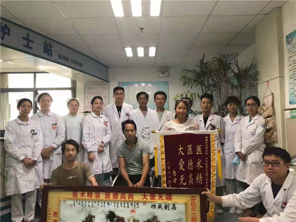 经大家纷纷伸出援助之手,落实了患者治疗手术费用,患者于2021年5月8日入院治疗,经行外固定支架拆除,取髂骨植骨及更换内固定手术,圆满完成了最后治疗。患者出院后,为骨三科全体医护人员送上了锦旗和“医术精湛、医德高尚、大爱无疆”的牌匾,表达了对医护人员的感谢之情,让他们的家庭有了希望。
