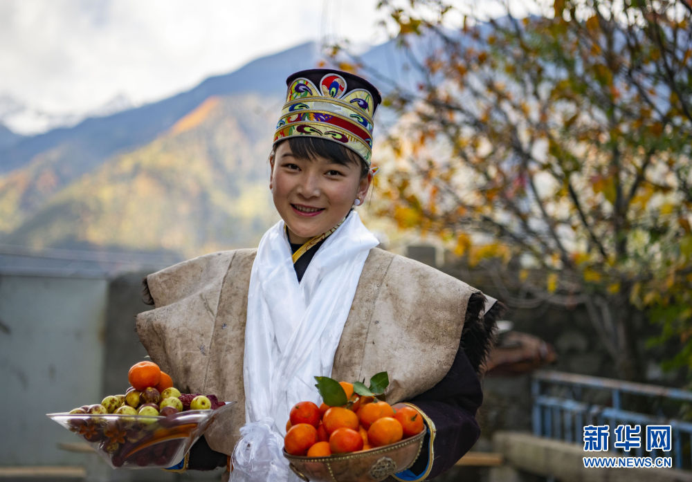 2020年11月18日,西藏林芝市巴宜区巴吉村村民在欢度工布新年。