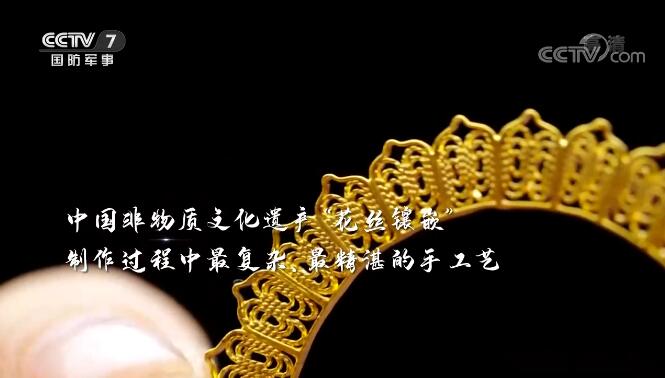 熔炼、压制、执模、铸造、电镀、珐琅、组装,七个步骤,十多道工序,手工制作占比60%,中国非物质文化遗产“花丝镶嵌”,制作过程中最复杂、最精湛的手工艺。