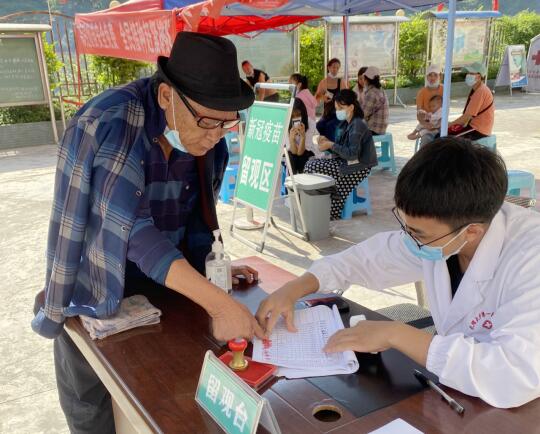 “老乡,21天后一定要记得来打第二针疫苗啊!”8月18日,在福贡县马吉乡疫苗接种点,大附院福贡新冠疫情防控医疗队队员朱元昭耐心地叮嘱前来进行疫苗接种的村民。连日来,大附院支援福贡县疫情防控医疗队派遣疫苗接种医疗保障小组,先后深入福贡县架科底乡、子里甲乡、鹿马登乡、石月亮乡、匹河乡和马吉乡开展疫苗接种保障工作。