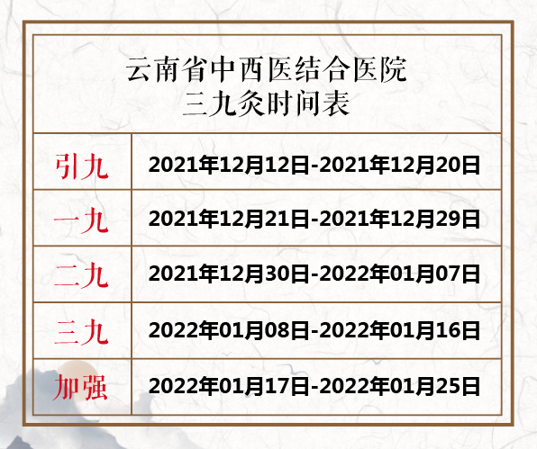 云南省中西医结合医院针灸科将于12月12日推出“三九灸”服务,让广大市民朋友健康过冬。