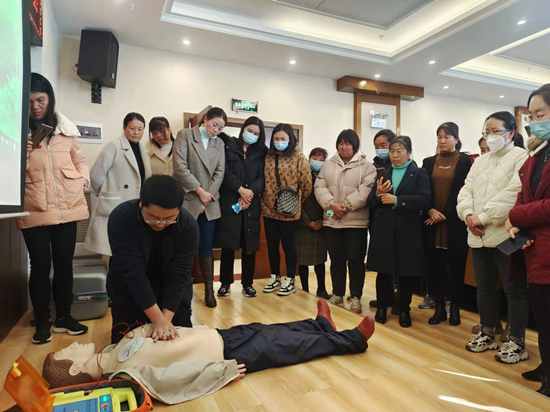 培训围绕项目核心健康知识、健康传播沟通技巧等进行了培训,县医院的医生演示了生命体征的测量方法和“七步洗手法”,普及了急救知识和做现场心肺复苏、自动体外除颤仪(AED)的操作培训。
