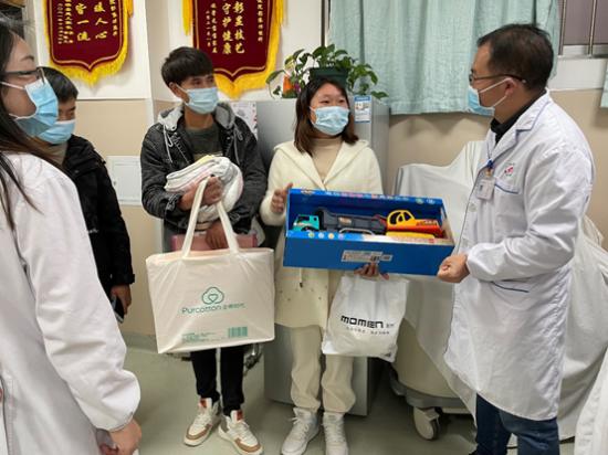 2022年新年伊始,省妇幼保健院临床一支部和机关四支部联合开展“罕见的病,常见的爱”主题党日活动,两个支部的党员为我院接受的基层转诊罕见病患儿一家送上温暖。在黎明副院长带领下,当机关四支部组织委员邹团标将爱心慰问品送到患儿父亲手中时,他不禁热泪盈眶,说道“自孩子到医院就诊到现在平安出院,一直受到你们医护人员额外的照顾,真的很感动,谢谢你们!这是我们表达谢意送的锦旗也请你们收下!”