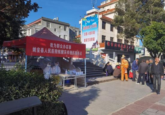 姚安县人民医院在县城梅葛广场设置核酸采样便民服务点。供图