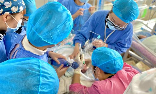 大理大学第一附属医院儿科医护人员奋力抢救迷你宝宝。供图