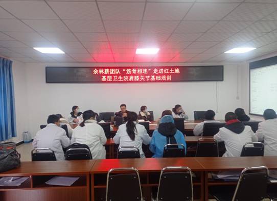 义诊结束后,余主任采用理论培训和现场示范带教的形式,对红土地镇中心卫生院临床医生进行了肩膝关节疾病基础知识培训,让临床医生从实际中体会如何正确诊断常见肩膝关节疾病,并对基层卫生院使用的中医适宜技术进行了指导。
