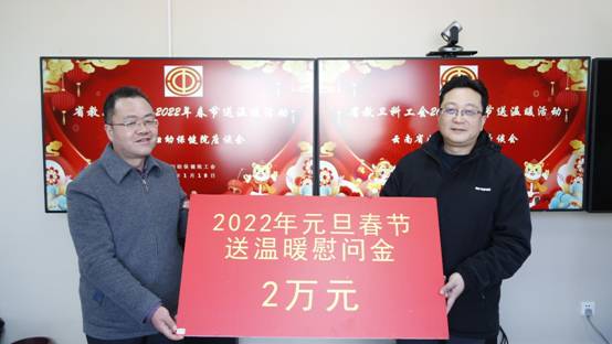 最后,普春昆主任代表省教卫科工会将元旦春节送温暖慰问金转交云南省妇幼保健院,用于慰问节日期间坚守工作岗位的一线职工。