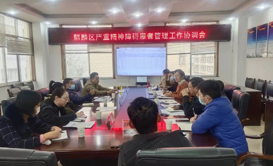 为加强严重精神障碍患者发现、治疗、管理服务,促进患者康复、回归社会,维护社会稳定,2月18日下午,曲靖市麒麟区卫生健康局组织召开了严重精神障碍患者健康管理工作协调会议。区委政法委、曲靖市公安局麒麟分局、区民政局、区医保局分管领导,区卫健局相关科室负责人,区人民医院分管领导和业务负责人、区疾控中心分管领导参加会议。