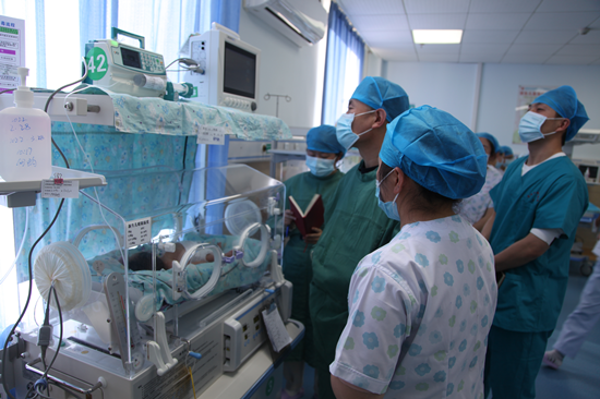 评审专家查看危重孕产妇和新生儿救治中心。供图