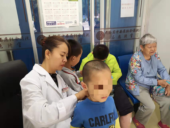 云南省中西医结合医院治未病科、体检科主任寇惠玲正在为孩子做检查。供图