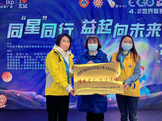 此次活动主办方代表、中国狮子联会云南代表处第二副主任崔霞介绍,2015年以来,中国狮子联会云南代表处一直在全省范围开展助学、助残、扶贫、敬老等公益活动,此次联合昆明市蒙多贝自闭症儿童康复中心开展自闭症关爱活动,也是希望借此机会让更多人了解自闭症,及时发现自闭症,同时也呼吁社会接纳自闭症群体,让他们能更好地融入社会。此次义卖和筹款所得费用,将依托云南省青基会最终用于孩子们的康复训练以及生存技能练习。