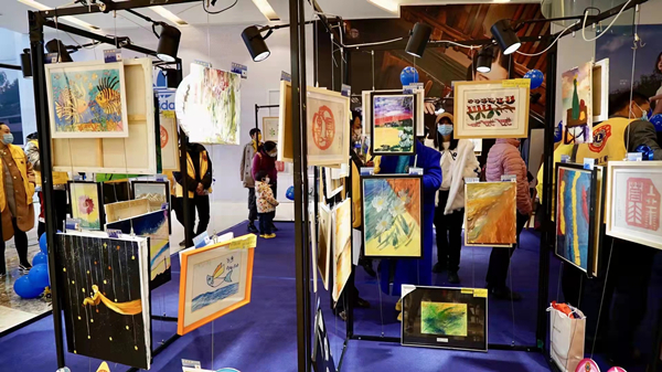 本次活动对100幅由孤独症儿童绘制的作品进行现场展览义卖,吸引了不少市民驻足欣赏。蓝天、碧水、飞鸟、游鱼……“来自星星的孩子们”用画笔描绘出了自己眼中神奇多彩的世界。现场还有专业老师对孤独症相关知识进行讲解普及。