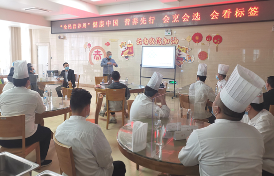 “营养是人生一辈子的事,厨师不应只是色香味美的烹饪大师,还应该是营养烹饪的大师。”4月23日,在第八届全民营养周来临之际,昆明医科大学第二附属医院营养科孙海嵩走进云南省农村信用社机关食堂,对现场20多位厨师们交流相关食物营养的心得,进行了营养学方面指导。