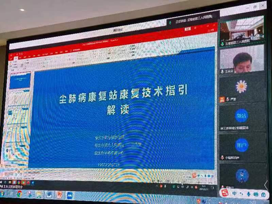 此次培训特别邀请了重庆市职业病防治院(重庆市第六人民医院)和上海市肺科医院的国内知名尘肺病专家分别就《尘肺病康复站康复技术指引》、《尘肺病康复站建设及管理》和《尘肺病的规范化治疗》等专题进行了网络授课辅导。云南省第三人民医院职业病科专家对基层康复站的学员就康复设备使用、信息化平台规范管理等问题进行了面对面的帮带、指导。