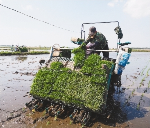 ②调兵山市晓明镇种粮大户刘恩华家的插秧机都用上了北斗导航系统,秧苗不仅种得好,而且速度快。狄文君摄
