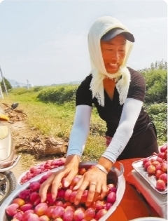 ④朝阳县羊山镇大四家子村扶贫产业鸡心果收获了。杨靖岫摄