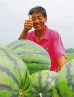 ⑤皮薄肉细、甘美爽口的新民小梁山西瓜熟了。黄尔贵摄