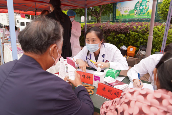 “听说有省里三甲医院的专家来义诊,我一早就赶来了。”在阜外医院的展位前,61岁的狮山镇群众老董开心地说。他刚在阜外医院的潘晓娟医生那测量了血压,又详细咨询了高血压日常用药事项。“您的血压控制得不太好,正常情况下按照你的年龄血压应该控制在高压140,低压90。”现场坐诊的专家对她日常血压控制进行了专业的指导,并建议他购买一个专业的血压计,卫生健康“三下乡”集中服务活动让他在家门口看上了专家号。