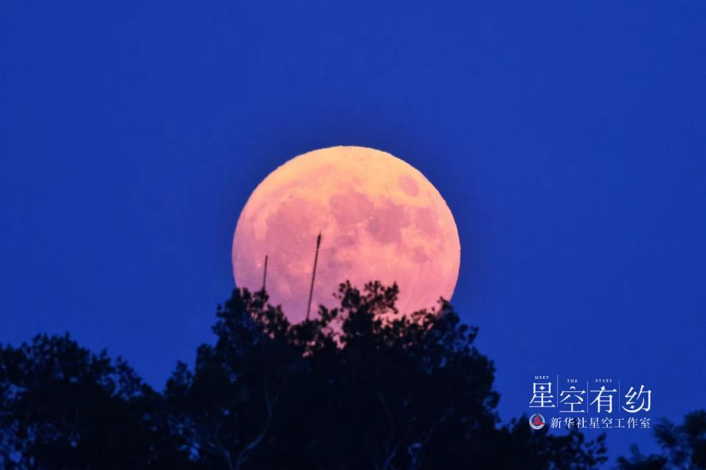 这是北京市天文爱好者王俊峰2022年7月13日在北京北海公园拍摄的年度最大满月。(本人供图)