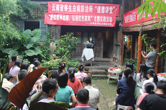 8月4日,云南省寄生虫病防治所党委、女职工委员会组织全体干部职工,到思茅区草巷子新时代文明实践站开展“赓续精神血脉,弘扬红色家风 ——家庭美德专场”道德讲堂活动,引导干部职工传承红色基因,涵养清正家风。