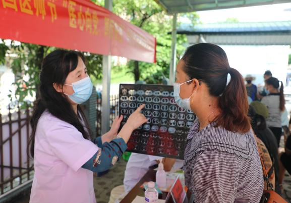 8月16日,在第五个中国医师节来临之际,复旦大学附属中山医院、复旦大学附属儿科医院、上海中医药大学附属光华中西医结合医院、上海市长宁区精神卫生中心帮扶医疗专家团队和金平县人民医院专家团队共同在勐拉镇开展2022年中国医师节“医心向党、踔厉奋进”惠民生志愿服务义诊活动。