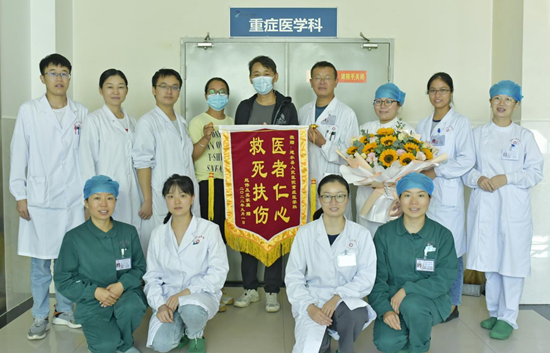 “我老公恢复得很好,真的太感谢您和您科室的医护人员了!”9月6日上午,患者赵先生及其妻子将一面写有“医者仁心 救死扶伤”的锦旗送到了建水县人民医院重症医学科。