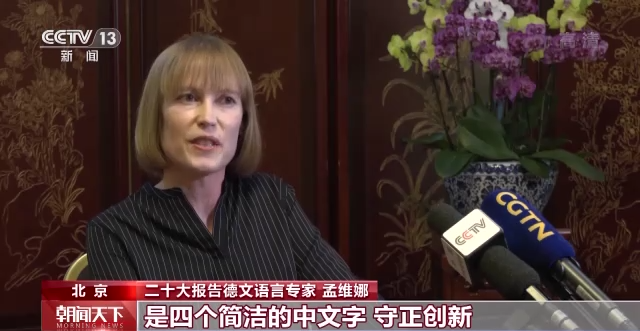 二十大报告德文语言专家 孟维娜:报告中有一个表述深深地留在我脑海中,是四个简洁的中文字“守正创新”,它和我在中国十多年的所见所感是一致的。一方面守住中国的传统与文化的根脉,另一方面又敢于去创新。