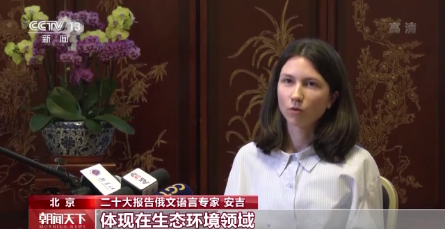 二十大报告俄文语言专家 安吉:我感受到这些年中国历史性和转折性的变化,体现在生态环境领域,空气质量一年比一年好。因为中国开展了大规模国土绿化行动,污染防治攻坚战,推动绿色低碳发展等。可以看出中国共产党正在为实现碳达峰碳中和的目标作出不懈努力。
