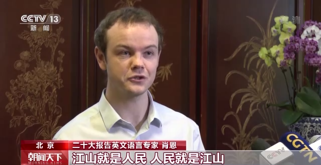 二十大报告英文语言专家 肖恩:“以人民为中心的发展思想”、“江山就是人民,人民就是江山”,这些词汇真正诠释了中国共产党注重与人民之间的血肉联系,全心全意致力于让人民生活得更好,为人民服务。