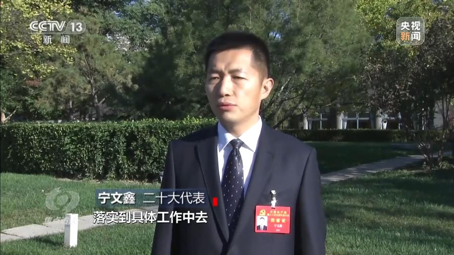 二十大代表 宁文鑫:我们要把大会确定的宏伟蓝图落实到具体工作中去,撸起袖子加油干,一步一个脚印,把党的决策部署付诸行动。