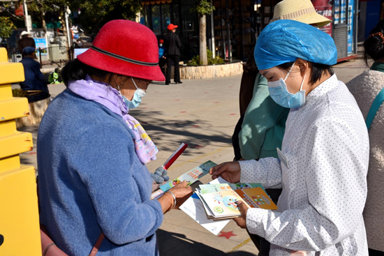 2022年11月14日是第16个“联合国糖尿病日”,今年的主题是“教育保护明天”。为提高市民对糖尿病防治工作重要性的认识,有效地控制糖尿病的发生及进展,11月14日上午,楚雄州大姚县人民医院内三科、上海仁济医院、楚雄州人民医院援助专家蒋毅弘、韩丽等15人到县城北街广场为市民进行糖尿病主题宣传义诊活动。本次前来咨询就诊的市民近200人,发放各种宣传资料800余份。