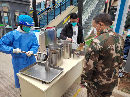 “医生,给我再来点,我家有5个人。”玉皇阁社区的曹大妈一大早就来排队,一边领取“大锅药”,一边对医护人员说:“谢谢你们!自从市二院开起来后,我们看病太方便了,在家门口还可以免费领到防疫‘大锅药’”。