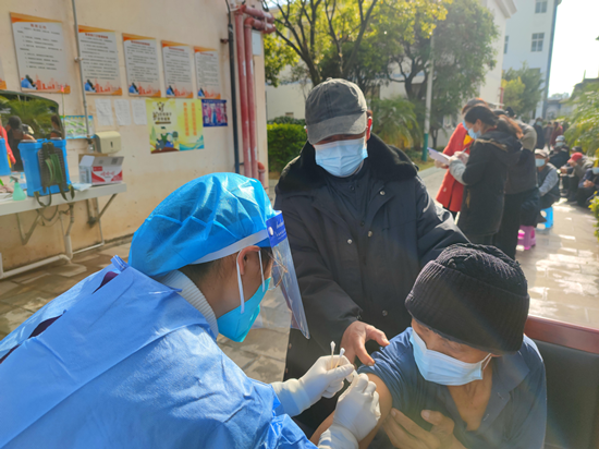1月1日上午,大理州巍山县紧密型医共体庙街分院的党员小分队走进庙街敬老院开展迎“元旦”送温暖活动,36名接种了第四剂。这样的上门接种服务,让老人足不出户实现“院内接种”,为老人们撑起“防疫伞”。