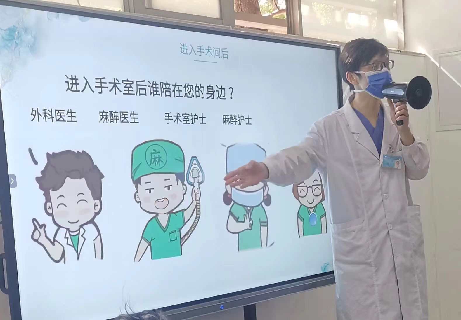 在一场手术中,除了主刀医生进行手术操作,其他大部分工作,如手术室的准备、器械消毒等都是由手术麻醉科的医护人员来完成。“医护人员真是太辛苦了,真不容易!”在听完宣教指导后,一位患者家属动情地向在场的医护人员们表示。